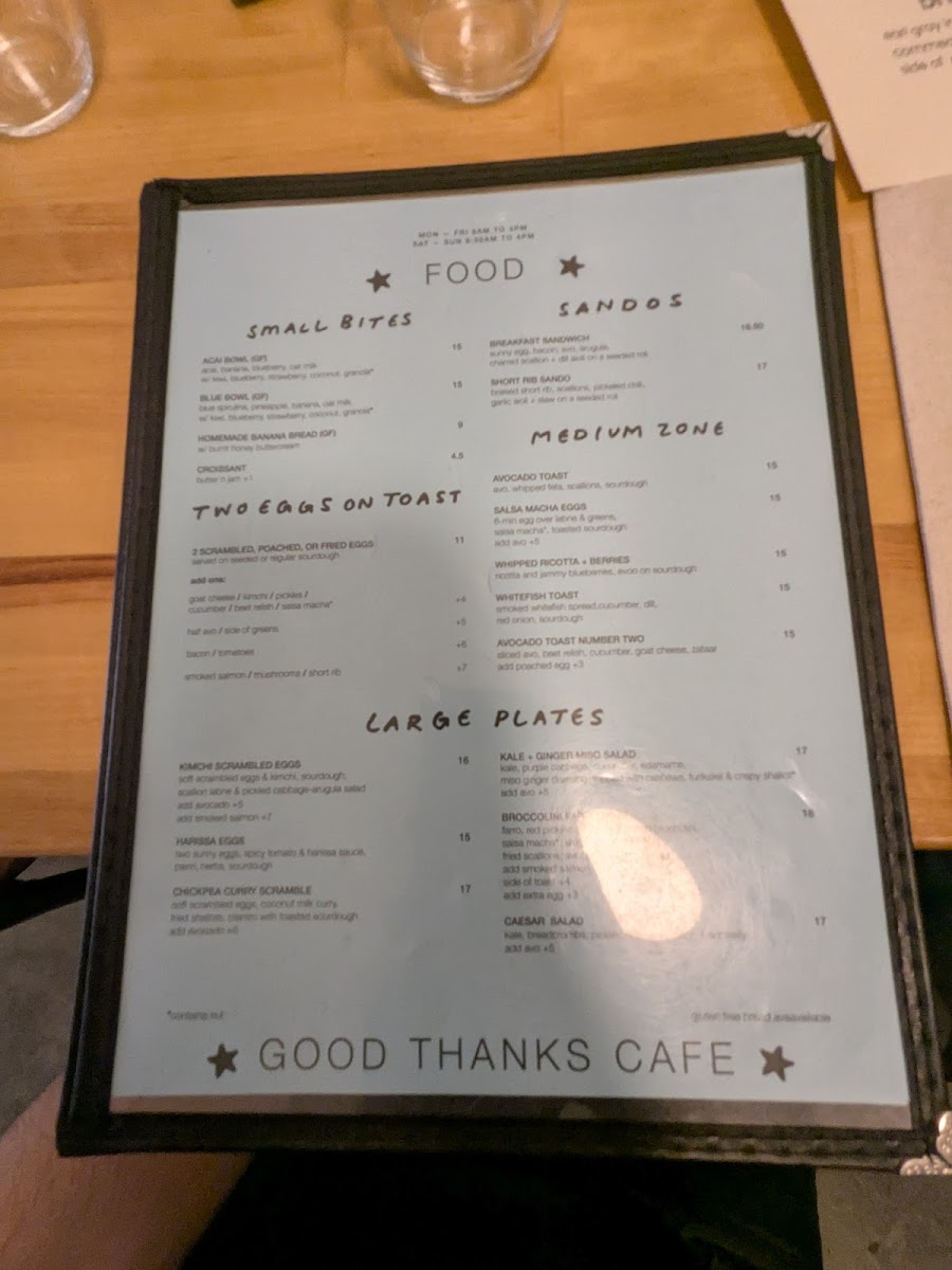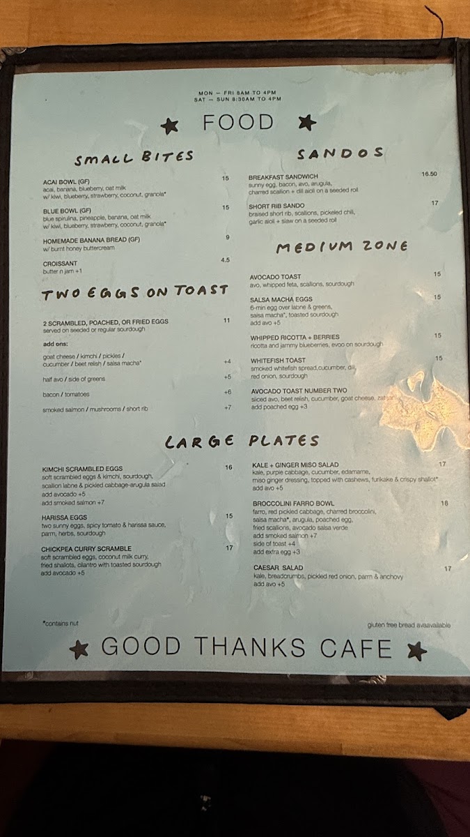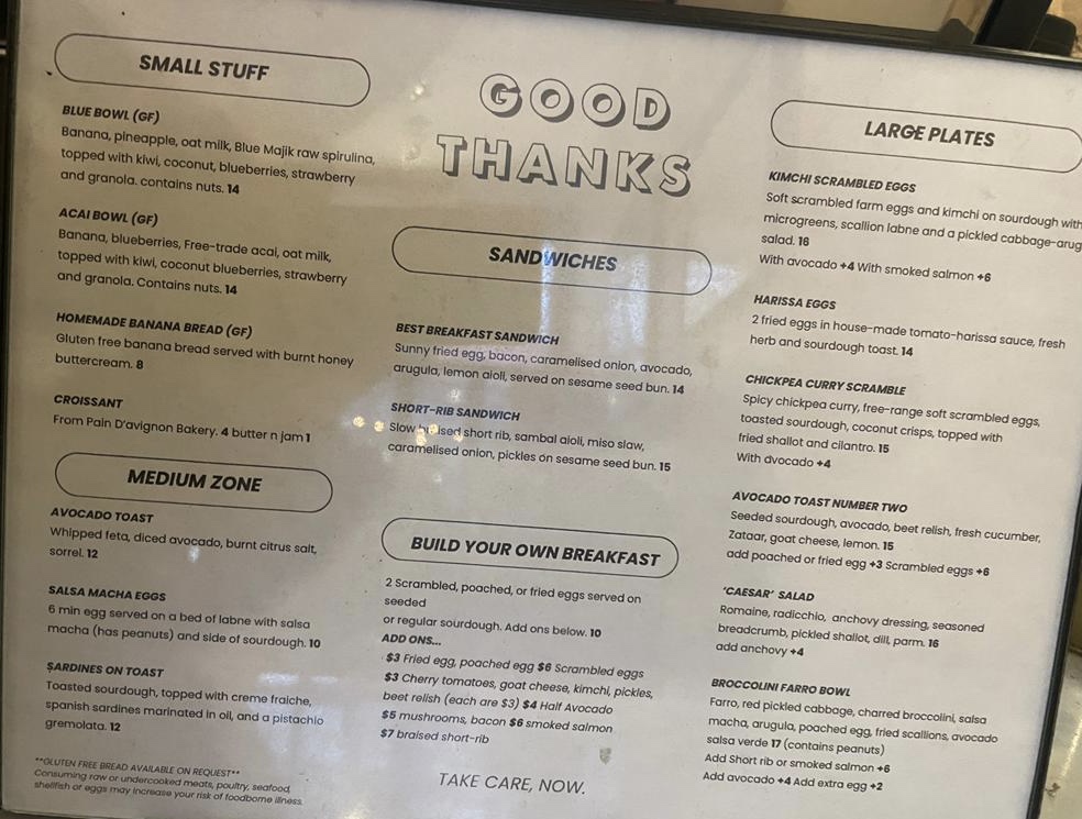 spicy chickpea curry, free-range soft scrambled eggs, toasted sourdough, coconut crisps, topped with fried shallot and cilantro.